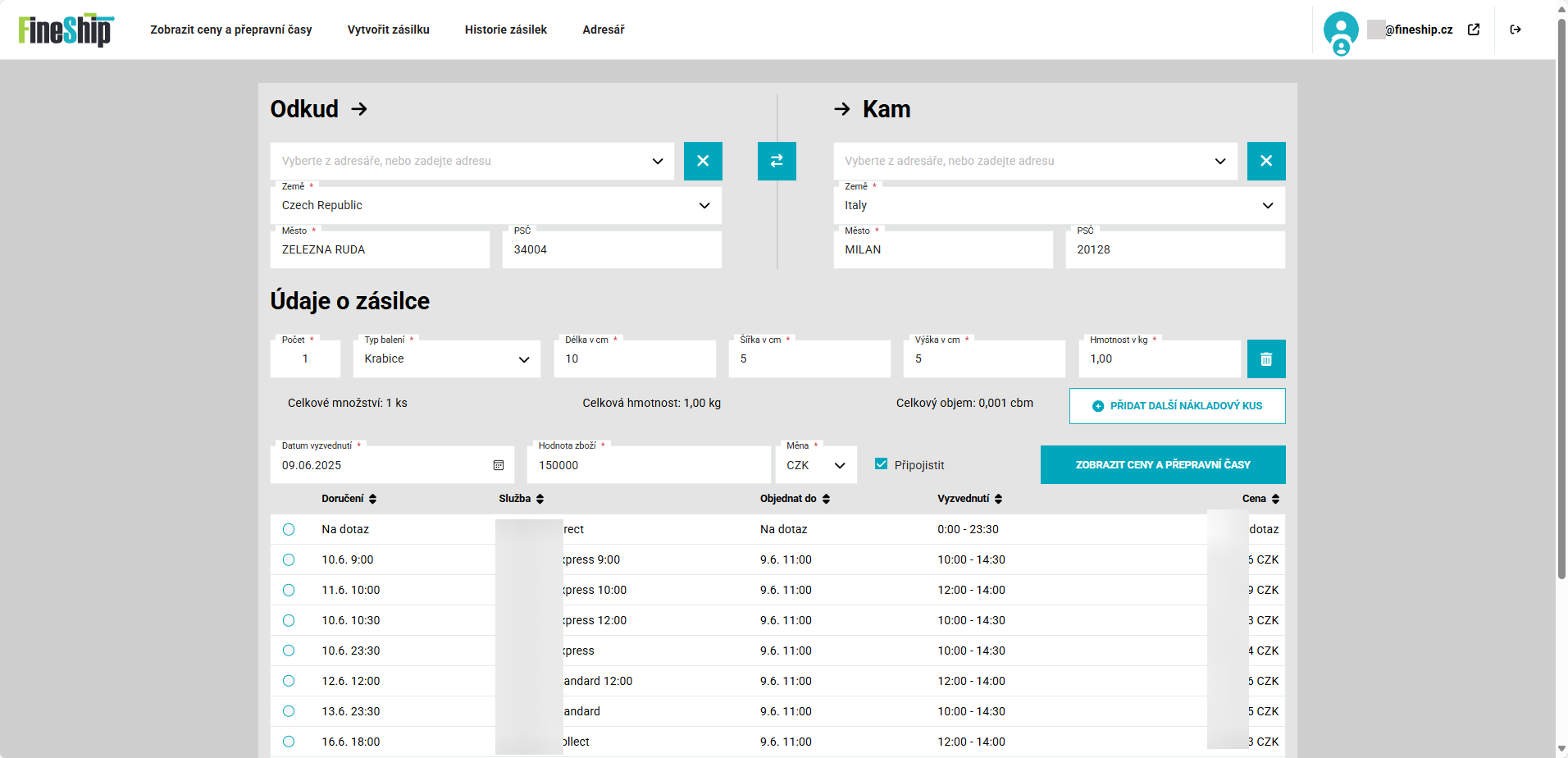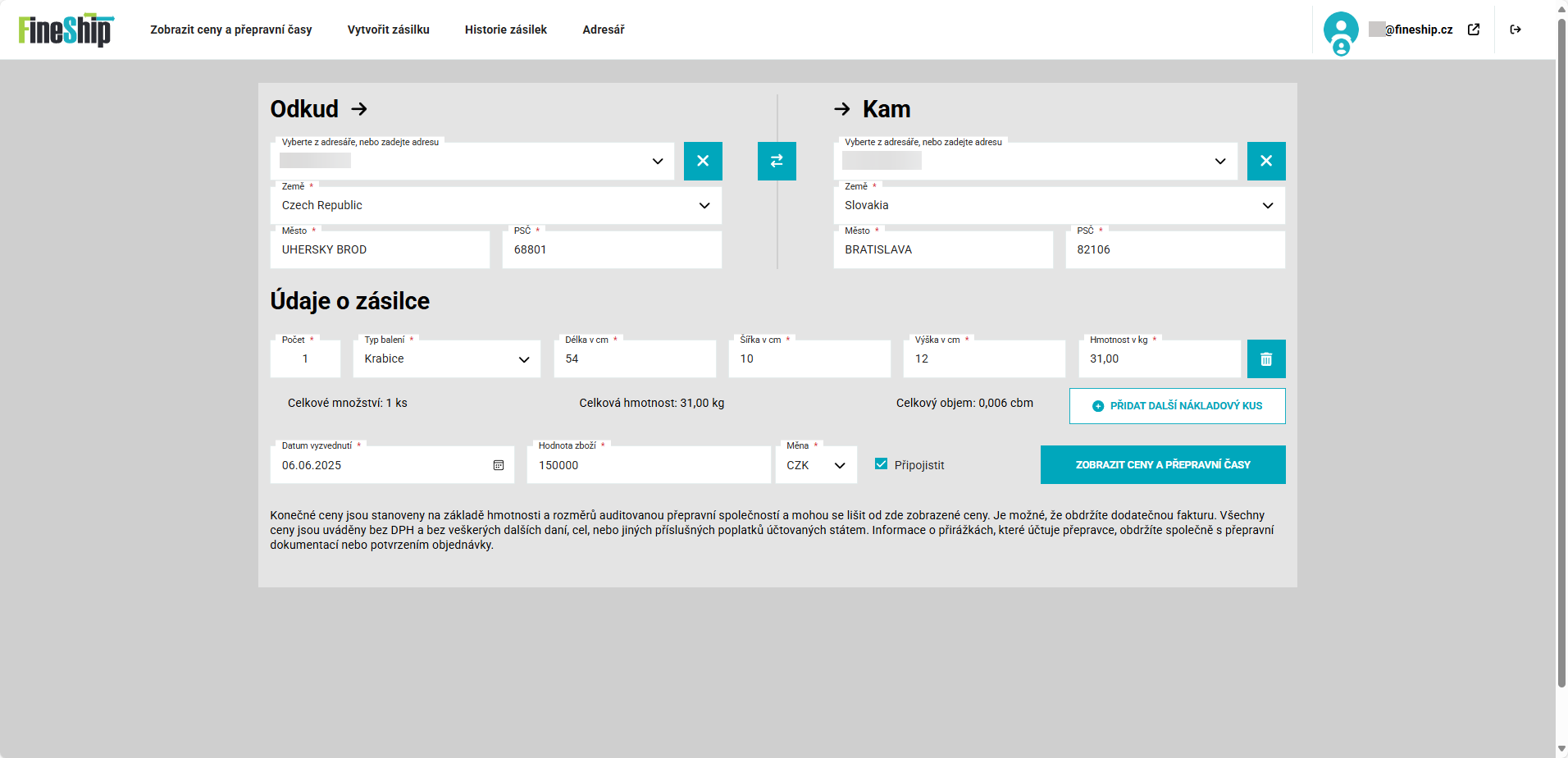 Ne, pro používání aplikace FINESHIP není nutné podepisovat smlouvu. Můžete nezávazně požádat o vytvoření zákaznického účtu a začít odesílat.